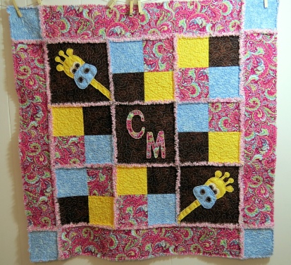 I can make this blanket with the initials or with another giraffe. Measurements are 37x37 inches. Let me know what colors you prefer. $50