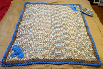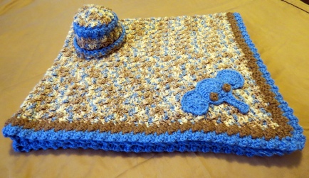 This is simply a sweet blanket and hat set. I can change the colors if you would like. But I do love the way this looks with the colors it is now. I can make this for $40
