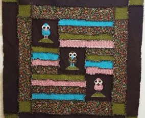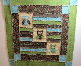 For those who love owls :) This is so cute. It is approx 47x47 inches, I can do it with cotton or flannel backing. It has a lot of detail stitching and cotton batting in the middle. I can make them the colors you prefer. Colors may vary slightly dependant on what the stores carry. $65, names and initials are additional.
